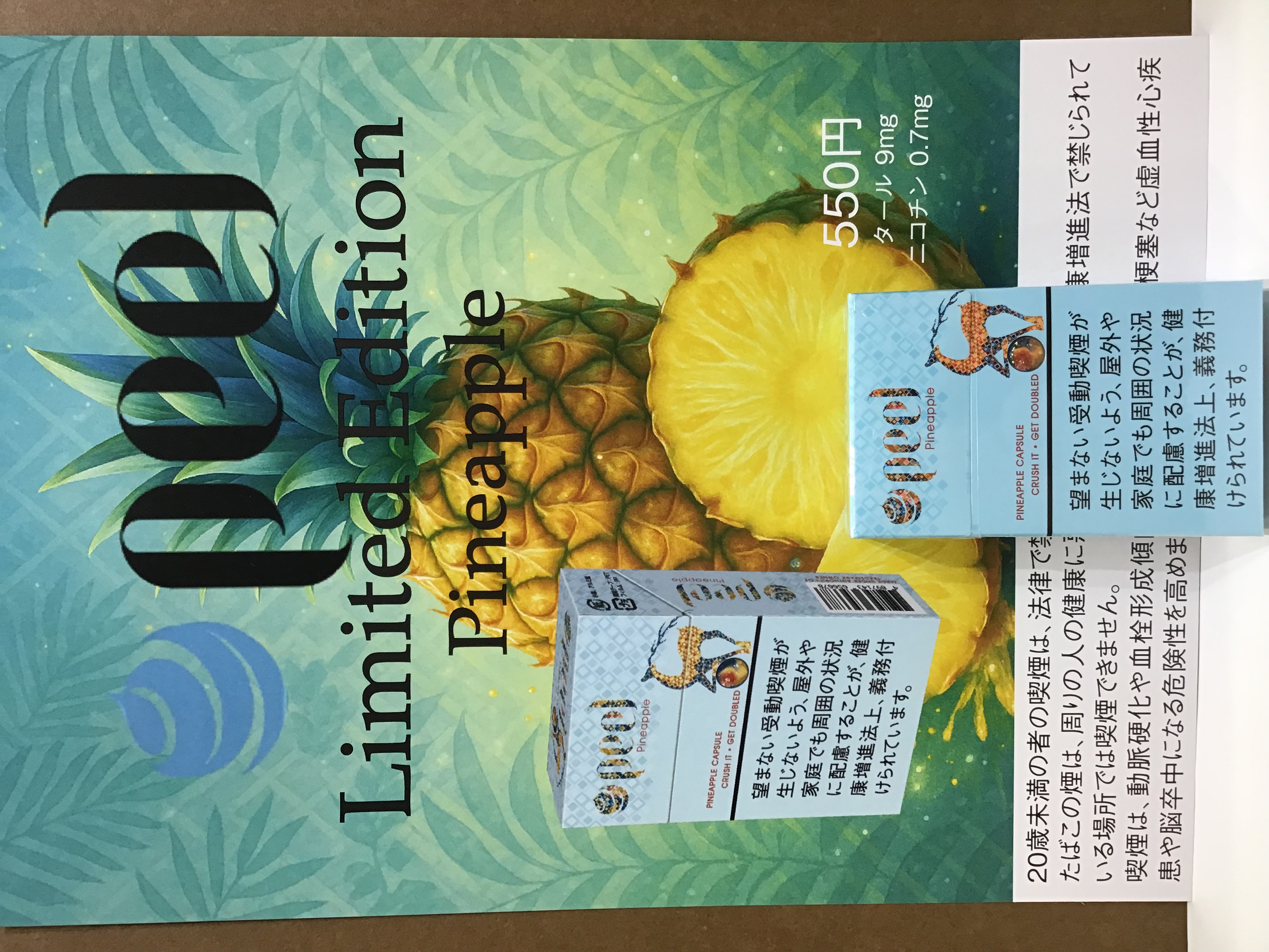 Peel(ピール)パイナップル¥550円タール9mgニコチン0,7つぶすと爽快パイン風味!